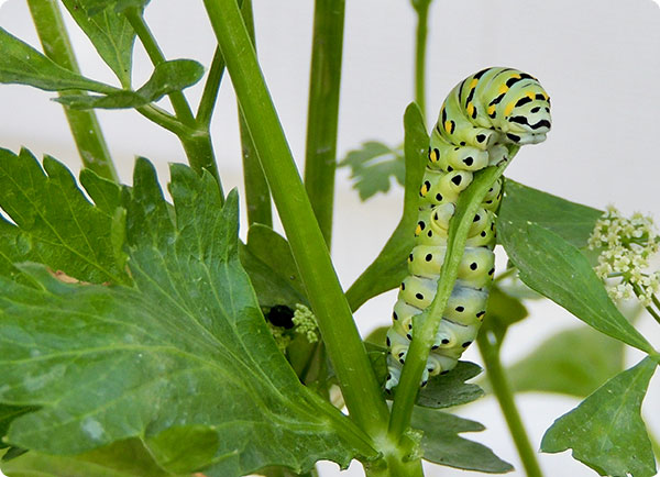 Zo is de zwart gele rups van een koolwitje dol op kool en de vlinder legt daarom graag zijn eitjes op kool. Maar het koolwitje houdt ook van oostindische kers. Plant deze daarom in de buurt van de kolen zodat de vlinder afgeleid wordt van de kool.